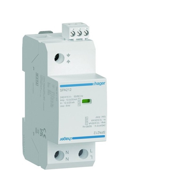 Parafoudre T1+T2+T3 2P 12.5kA TNS/TT - HAGER SPA212