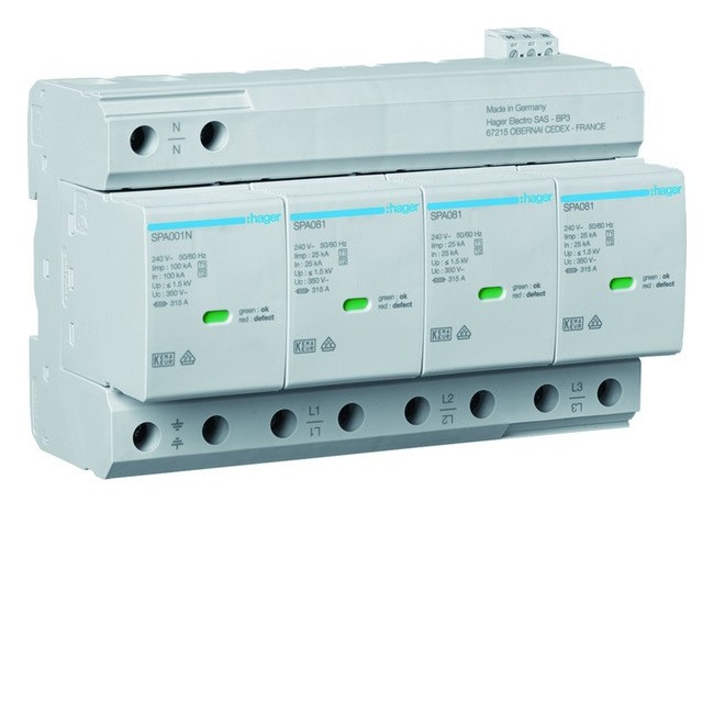 Parafoudre T1+T2 4P 25kA TNS/TT contact - HAGER SPA801