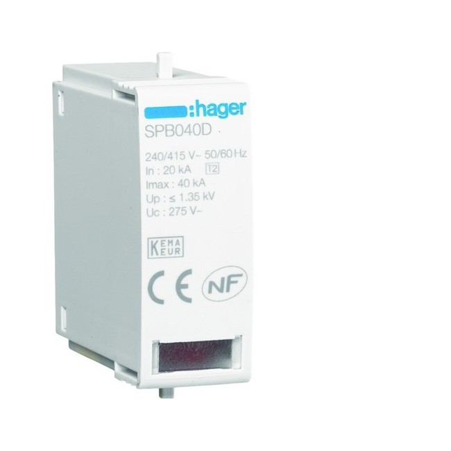 Cartouche L-N Uc 275V In 20kA Imax 40kA Up 1,35kV - HAGER SPB040D