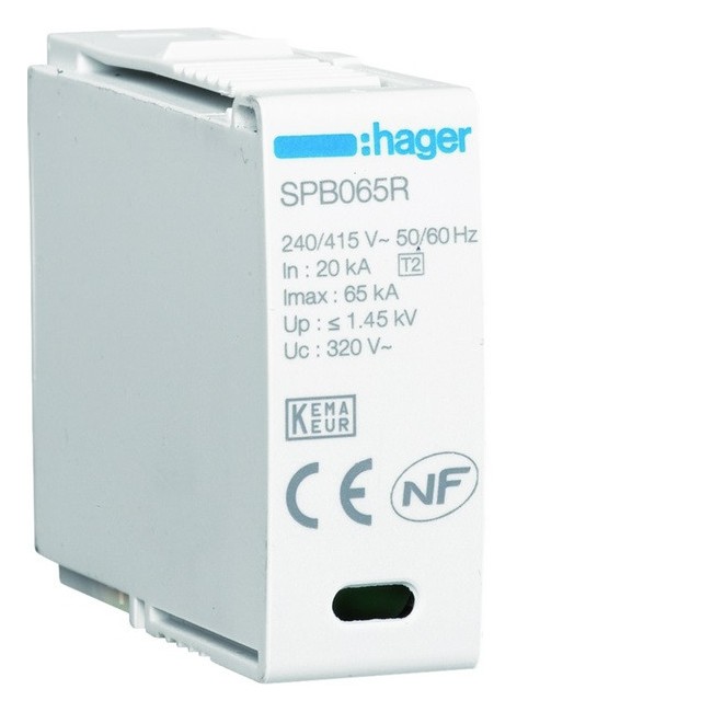 Cartouche L-N Uc 320V In 20kA Imax 65kA Up 1,35kV - HAGER SPB065R