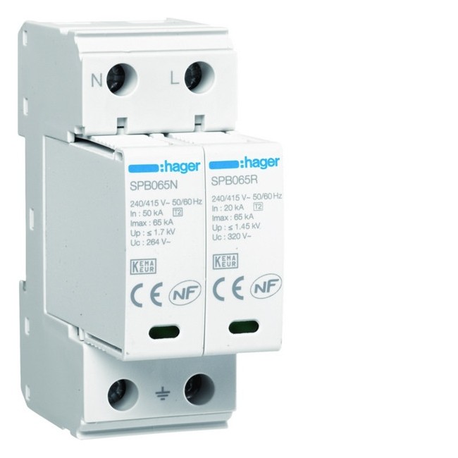 Parafoudre 2P T2 TNS/TT Uc 320V In 20kA Imax 65kA telesignalisation - HAGER SPB265R