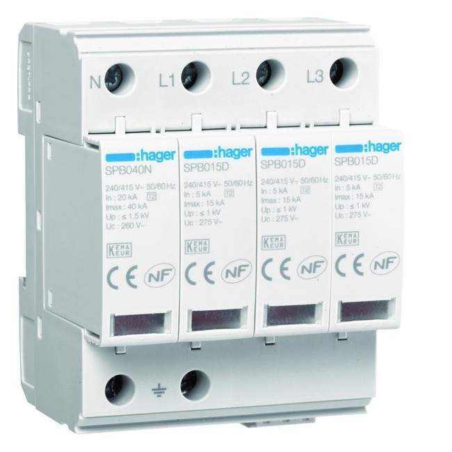 Parafoudre 4P T2 TNS/TT Uc 275V In 5kA Imax 15kA telesignalisation - HAGER SPB415R
