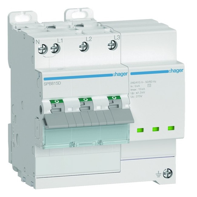 Parafoudre T2 3P+N auto-protégé 15KA voy - HAGER SPB815D