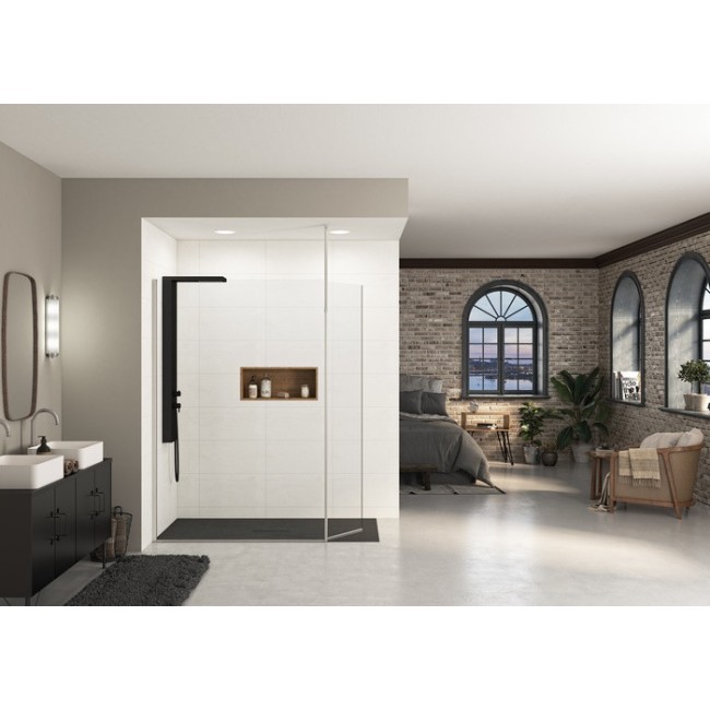 Paroi Ekinox Duo 90 profilé Inox, verre transparent charnière à gauche +Mat - KINEDO PA4222ITNEMG