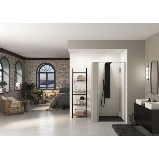 Paroi Ekinox P 80 profilé Inox, verre transparent charnière à droite