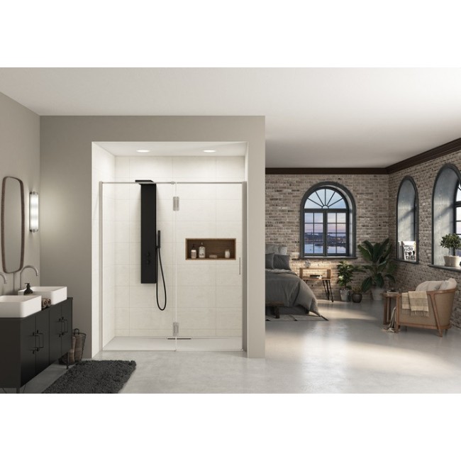 Paroi Ekinox P 170 profilé Inox, verre transparent charnière à gauche