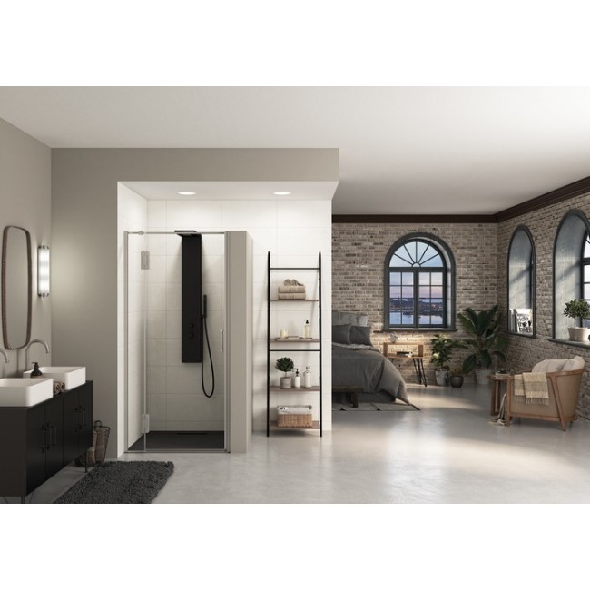 Paroi Ekinox P 120 profilé Inox, verre transparent charnière à gauche
