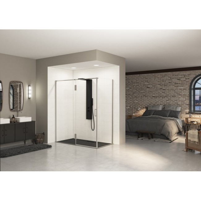 Paroi Ekinox P pour P+F 140 profilé Inox, verre transparent charnière à gauche - KINEDO PA4245ITNEG