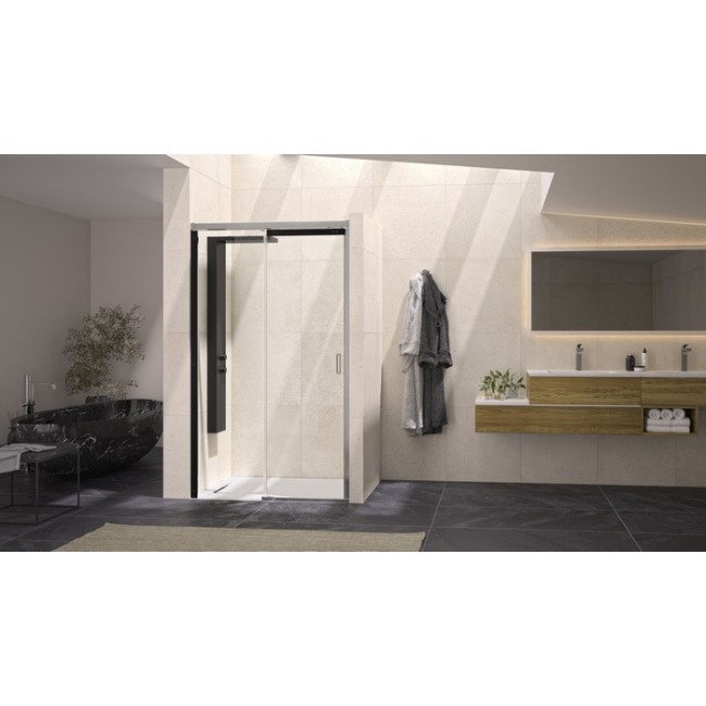 Paroi Flat 8mm coulissante 140 profilé chromé verre transparent, fixe à gauche - KINEDO PA765CTNEG
