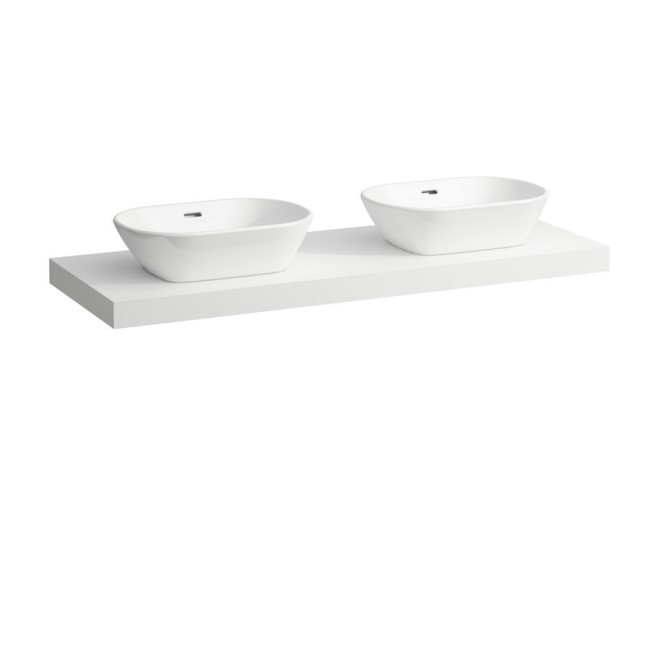 Lani plan de toilette, 1400 mm, avec découpe à gauche et à droite, 65 mm d’épaisseur, 3 équerres de fixation incluses 1370x495x65 mm blanc mat