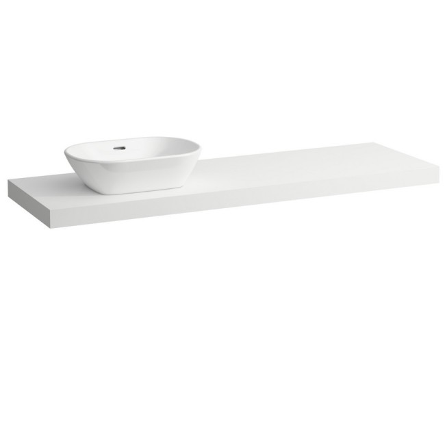 Lani plan de toilette, 1600 mm, avec découpe à gauche, 65 mm d’épaisseur, 3 équerres de fixation incluses 1570x495x65 mm blanc mat