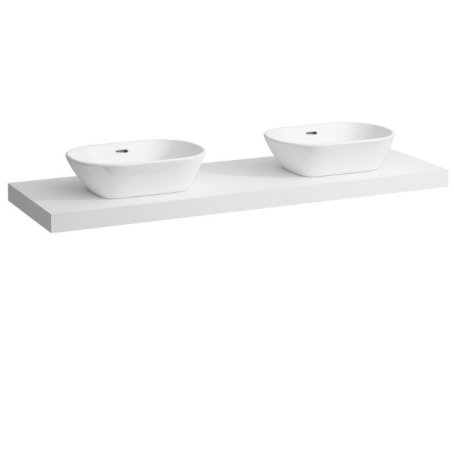 Lani plan de toilette, 1600 mm, avec découpe à gauche et à droite, 65 mm d’épaisseur, 3 équerres de fixation incluses 1570x495x65 mm blanc mat