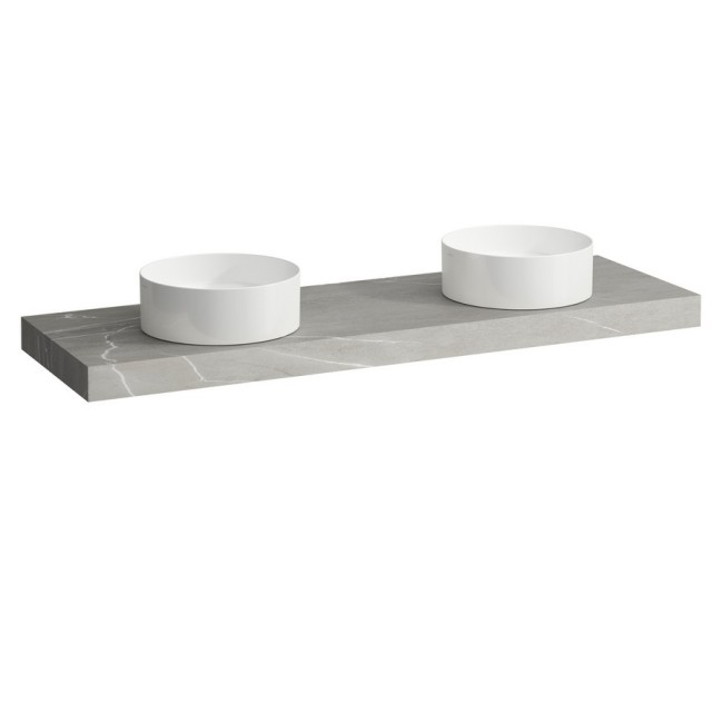 Arun plan de toilette 1600, avec découpe à gauche et à droite, 80 mm d’épaisseur, surface en grès cérame 6mm, 3 équerres de fixation incluses sélection grès cérame : ardesia bianca/ardesia nera/ piasentina grigio/botticino crema