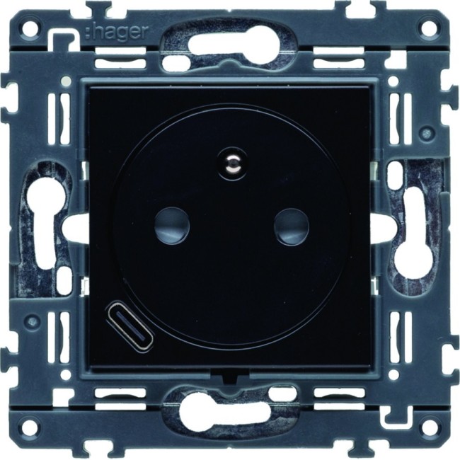 Prise de courant affleurante 2P+T avec USB-C Night - HAGER WXF114N
