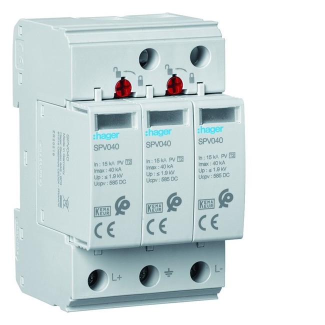 Parafoudre T2 3P 40kA photovoltaïque - HAGER SPV340