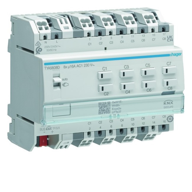 Module 8 sorties 16A 230V~ (charges capacitives) avec forçage manuel sans bus - HAGER TYAS608D