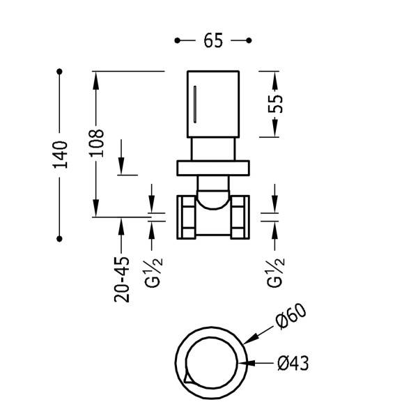 TRES Acier. Robinet d’arrêt encastré Raccord fileté femelle : 1/2".