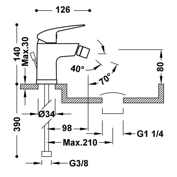 Mitigeur pour bidet avec vidage automatique Rotule orientable. Flexibles d’alimentation G3/8.