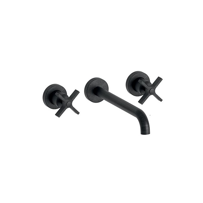 Lavabo Cross Road 3 Trous + Vidage Sans Mecanisme Chrome Noir Brosse Robinetterie CROSS ROAD - CRISTINA ONDYNA CR24375
