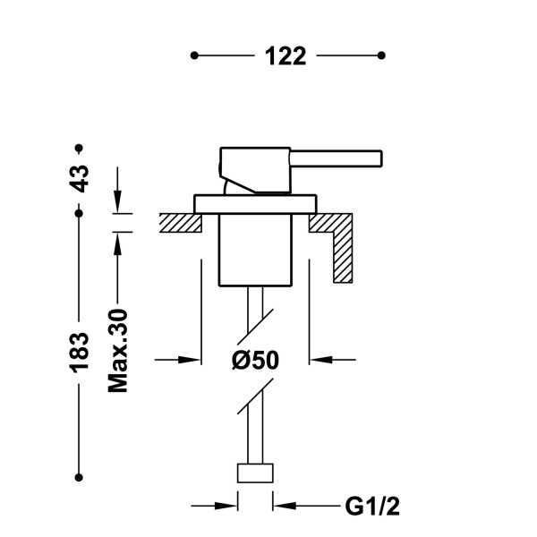 Mitigeur encastré à 1 voie monté en surface Finition: Chromé.