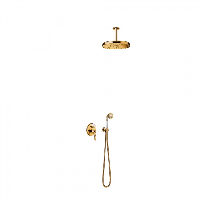 Kit douche à encastrer avec fermeture et réglage du débit - TRES 24218004OR Or