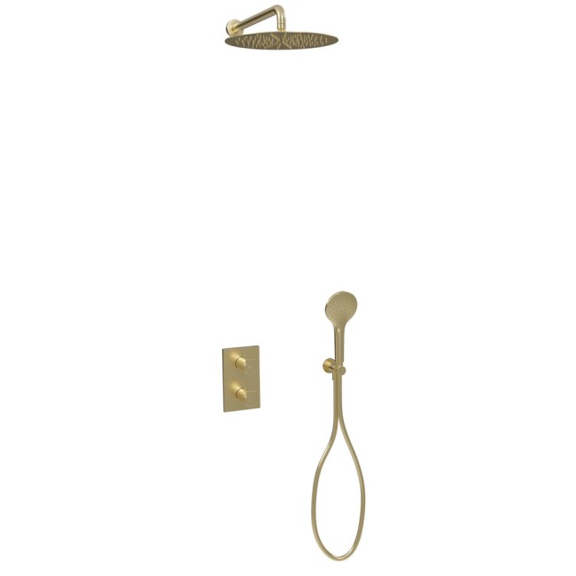 Pack Omega Thermostatique 2 Sorties Or Brossé: Un Élément Décoratif Pour Votre Salle De Bain.