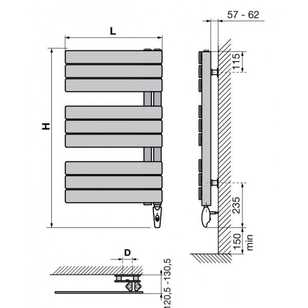 Sèche-serviette LVI mixte SILAY RF collecteur vertical à gauche disponible en puissance 500W, 750W et 1000W ainsi qu'avec un collecteur vertical à droite et en version électrique.