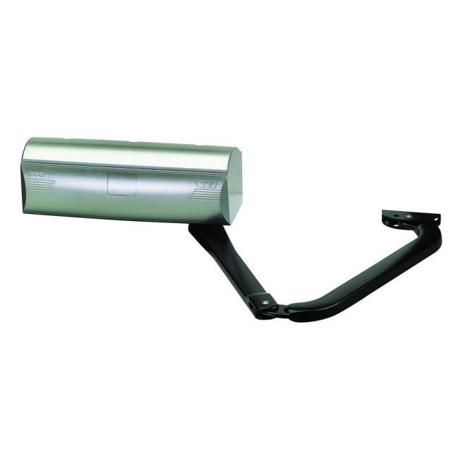 Opérateur à usage domestique. Vitesse angulaire 8°/S. Couple 250Nm. Angle d'ouverture max 120°. Si vantail supérieur à 1,8m utilisation d'une électro-serrure requise. Livré sans bras articulé