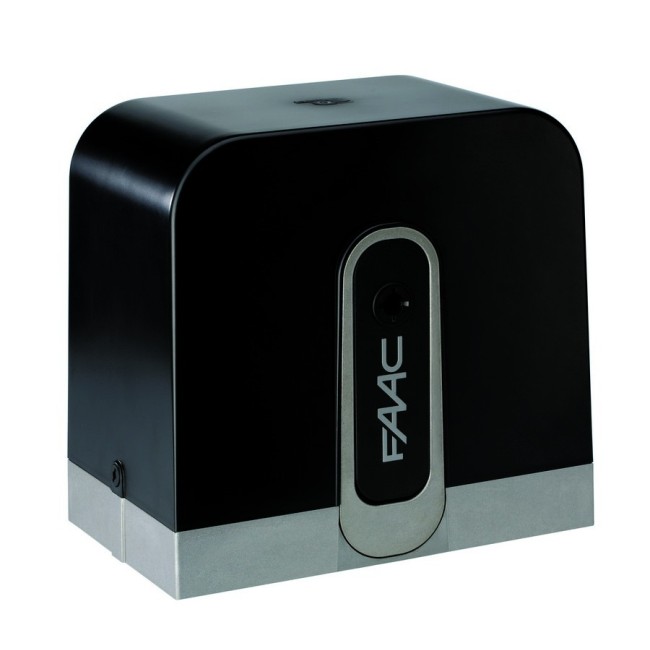 Automatisme 24V FAAC à basse tension pour portail coulissant jusqu'à 400kg. Nouveau principe de réduction breveté FAAC : un rendement très important (>80%) et une haute efficacité énergétique. Fin de course magnétique. Carte électronique de contrôle avec dispositif anti-écrasement et encodeur électronique. .