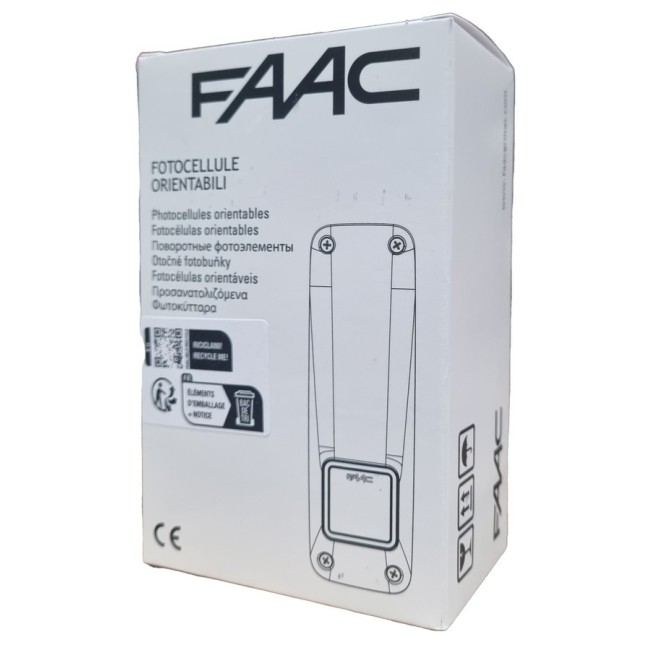Jeux de cellules orientables à 180°. Liaison 2 fils avec platines FAAC équipées d'entrée BUS 2Easy. Portée de 20m entre cellules.