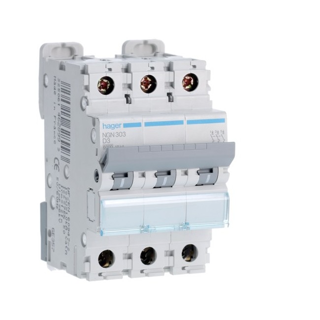 Disj.3P 6-10kA D-3A 3m - DISJONCTEURS MULTI. HAGER NGN303 PROTECTION TERTIAIRE - DISJ MULTI.6KA D