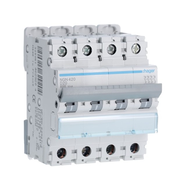 Disj.4P 6-10kA D-20A 4m - DISJONCTEURS MULTI. HAGER NGN420 PROTECTION TERTIAIRE - DISJ MULTI.6KA D