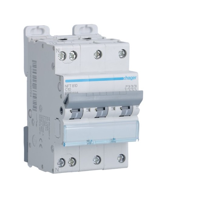 Disj.3P+N 6-10kA C-10A 3m - DISJONCTEURS MULTI. HAGER NFT810 PROTECTION TERTIAIRE - DISJ MULTI.6KA C