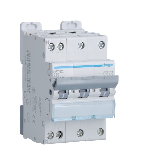 Disj.3P+N 6-10kA C-20A 3m - DISJONCTEURS MULTI. HAGER NFT820 PROTECTION TERTIAIRE - DISJ MULTI.6KA C