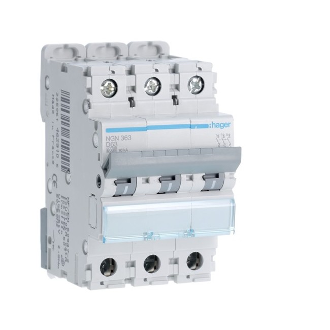 Disj.3P 6-10kA D-63A 3m - DISJONCTEURS MULTI. HAGER NGN363 PROTECTION TERTIAIRE - DISJ MULTI.6KA D