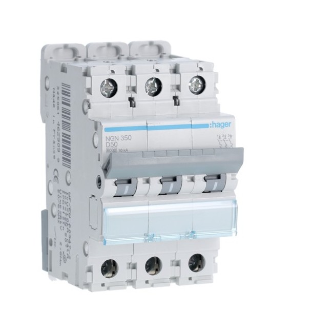 Disj.3P 6-10kA D-50A 3m - DISJONCTEURS MULTI. HAGER NGN350 PROTECTION TERTIAIRE - DISJ MULTI.6KA D
