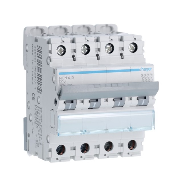 Disj.4P 6-10kA D-10A 4m - DISJONCTEURS MULTI. HAGER NGN410 PROTECTION TERTIAIRE - DISJ MULTI.6KA D