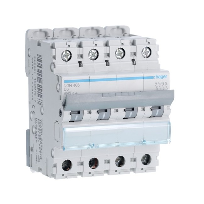 Disj.4P 6-10kA D-6A 4m - DISJONCTEURS MULTI. HAGER NGN406 PROTECTION TERTIAIRE - DISJ MULTI.6KA D