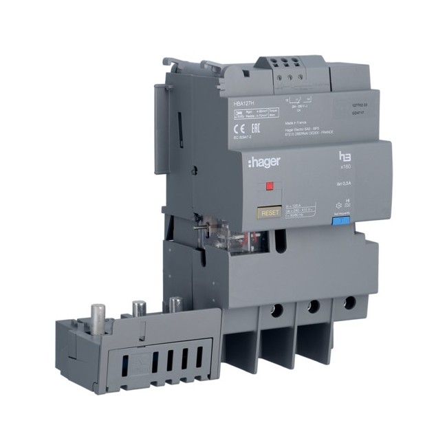 Bloc dif x160 3P 125A Idn fixe - APPAREILLAGE DE TETE HAGER HBA127H PROTECTION TERTIAIRE - BLOC DIFF ELECTROMEC