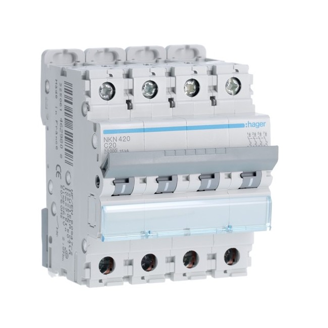 Disj.4P 10-15kA C-20A 4m - DISJONCTEURS MULTI. HAGER NKN420 PROTECTION TERTIAIRE - DISJ MULTI.10-15KA C