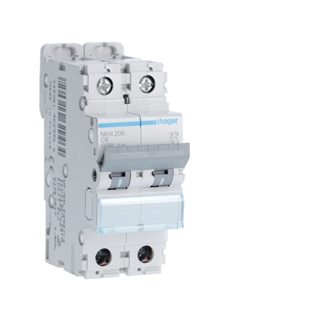 Disj.2P 10-15kA C-6A 2m - DISJONCTEURS MULTI. HAGER NKN206 PROTECTION TERTIAIRE - DISJ MULTI.10-15KA C