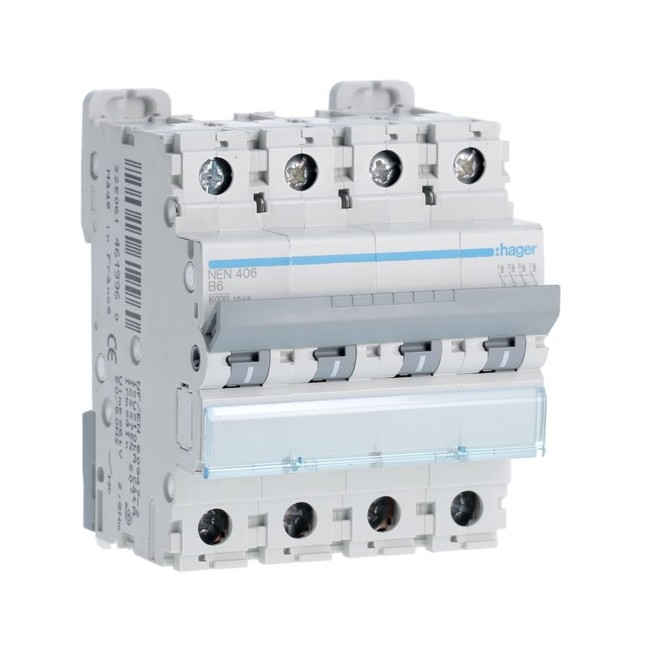Disj.4P 6-10kA B-6A 4m - DISJONCTEURS MULTI. HAGER NEN406 PROTECTION TERTIAIRE - DISJ MULTI.6KA B