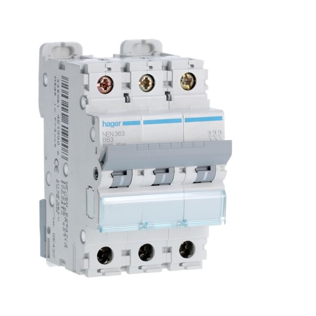 Disj.3P 6-10kA B-63A 3m - DISJONCTEURS MULTI. HAGER NEN363 PROTECTION TERTIAIRE - DISJ MULTI.6KA B