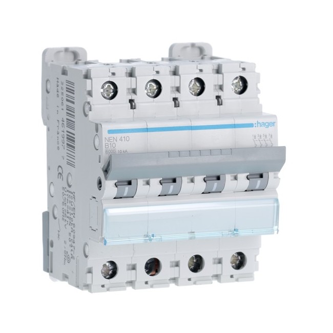 Disj.4P 6-10kA B-10A 4m - DISJONCTEURS MULTI. HAGER NEN410 PROTECTION TERTIAIRE - DISJ MULTI.6KA B