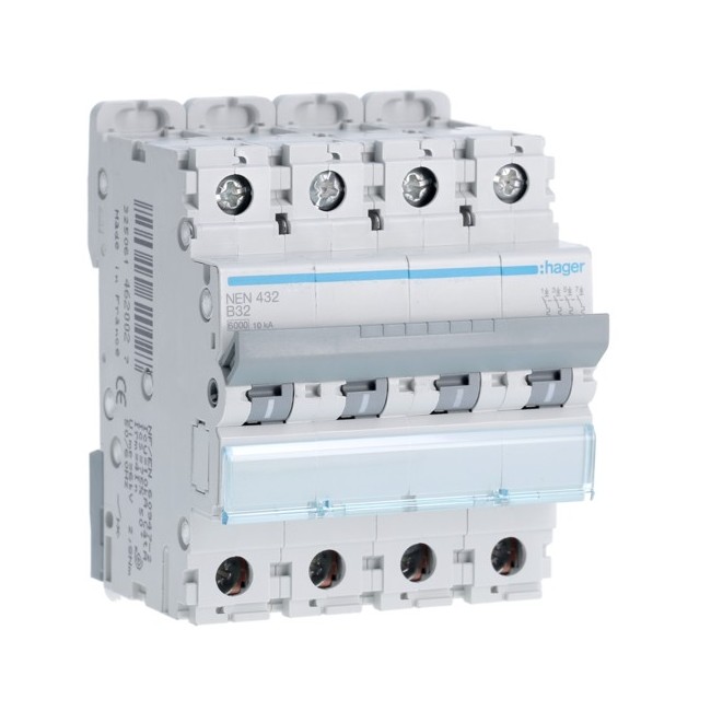 Disj.4P 6-10kA B-32A 4m - DISJONCTEURS MULTI. HAGER NEN432 PROTECTION TERTIAIRE - DISJ MULTI.6KA B