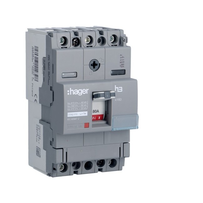 Disj.x160 3P 40kA 80A mag fixe - APPAREILLAGE DE TETE HAGER HNA080M PROTECTION TERTIAIRE - BM 160 A