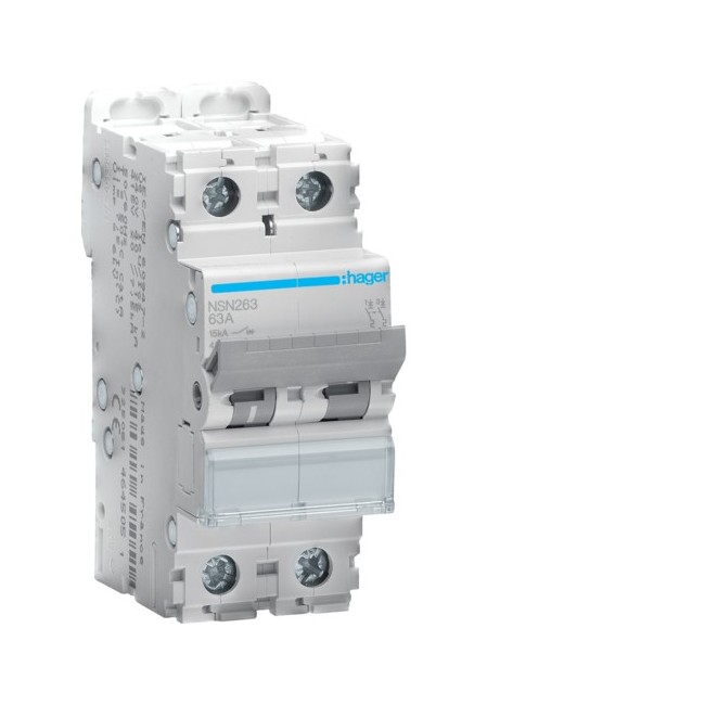 Disj.2P 15kA D-63A 2m - DISJONCTEURS MULTI. HAGER NSN263 PROTECTION TERTIAIRE - DISJ MULTI.25KA D