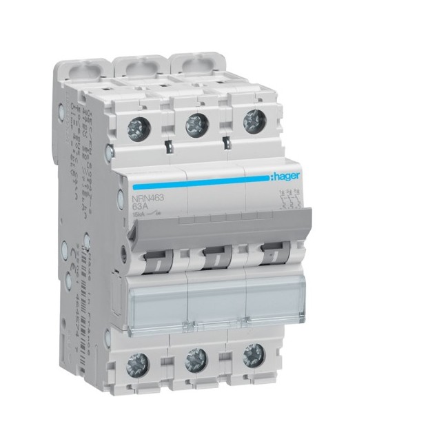 Disj.4P 15kA C-63A 4m - DISJONCTEURS MULTI. HAGER NRN463 PROTECTION TERTIAIRE - DISJ MULTI.25KA C