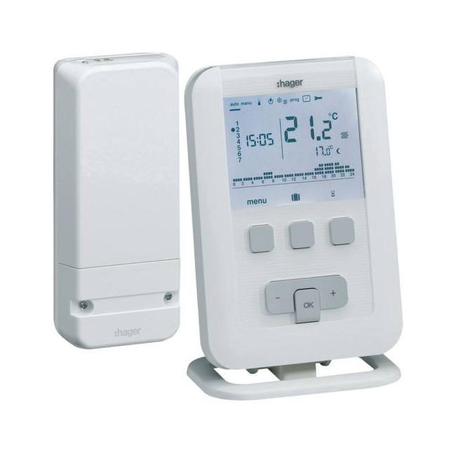 Kit thermostat d'ambiance programmable digital radio pour chauffage eau chaude HAGER.