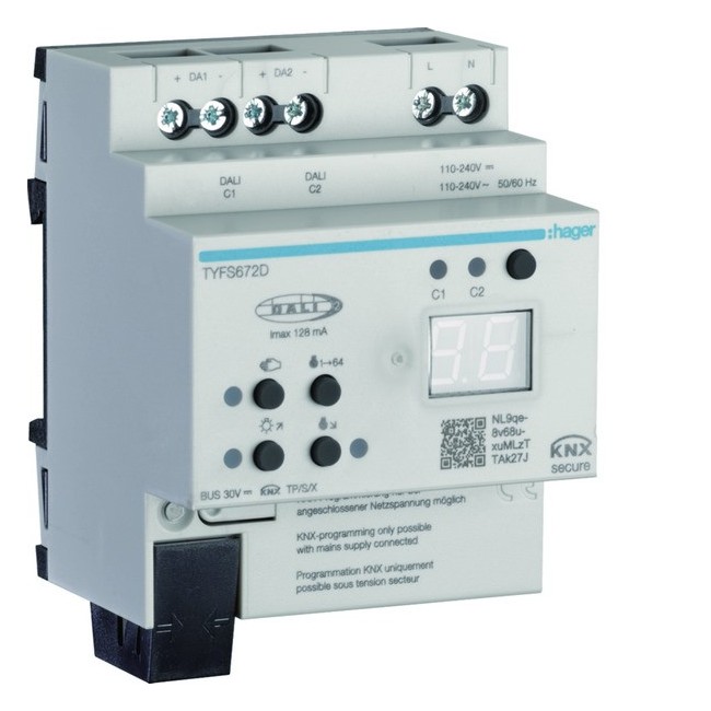 Passerelle 2 canaux KNX/DALI2 ETS only + balance des blancs - HAGER TYFS672D